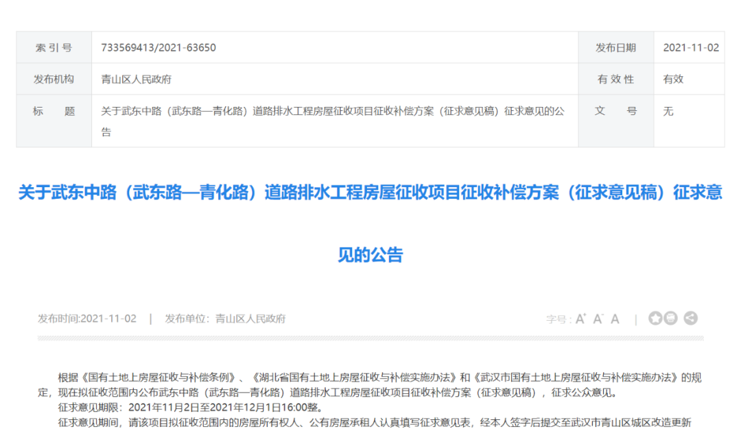 关于武东中路(武东路—青化路)道路排水工程房屋征收项目征收补偿方案(征求意见稿)征求意见的公告
