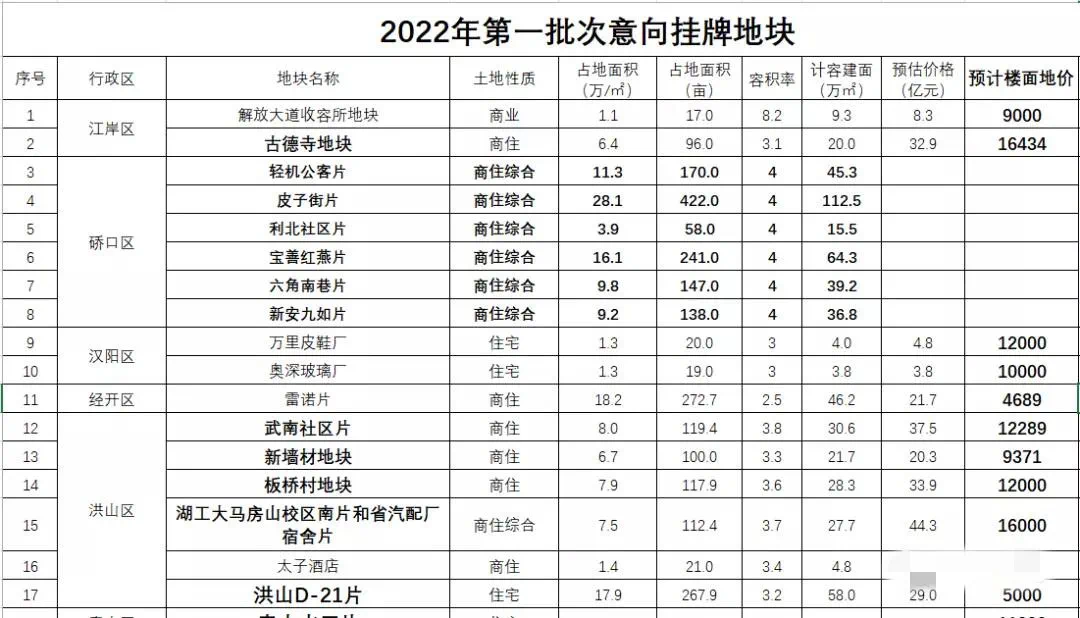 2022武汉首轮供地网传消息来了!涉及55宗地块