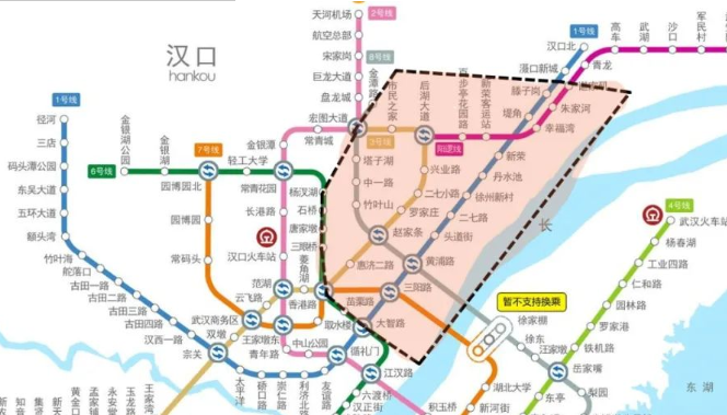 被其他区域用来判断是否符合核心的一个标准是,与武汉天地的距离,而武汉天地在江岸区。当青山还盼着排名前列条地铁开通,硚口就靠着一条1号线打天下的时候,江岸区已经集齐了7条地铁,近20个地铁站点。