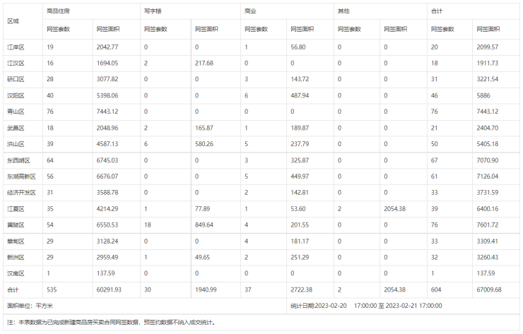 【武汉成交日报】02月21日新建商品住房成交535套