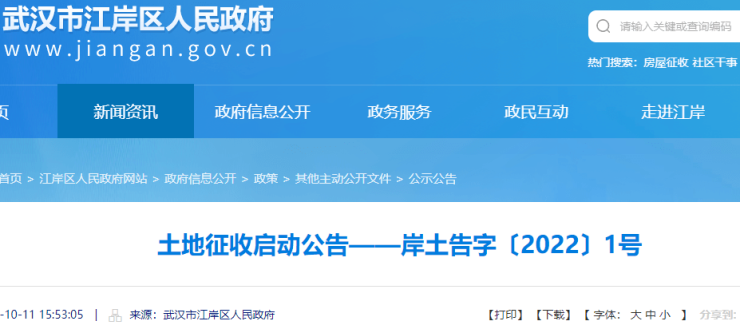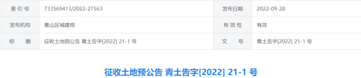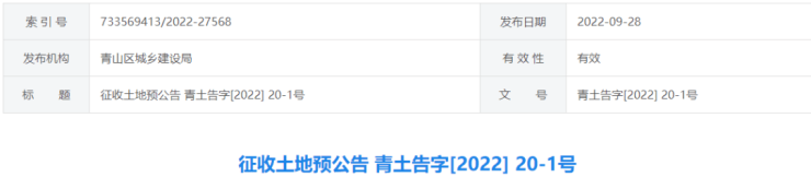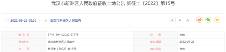 10月21日消息,搜狐焦点获悉,武汉多个区域发布土地征收公告,涉及新洲区、青山区、江岸区。