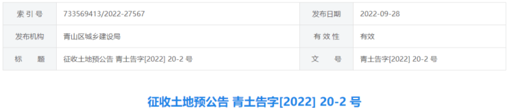 征收目的:该项目已列入《区城建局区发改局关于下达2019年青山区(化工区)城建项目的通知》(青建文[2019]7号),属于区人民政府组织实施的交通基础设施用地,在城镇开发边界内,征收目的为公共利益需要。