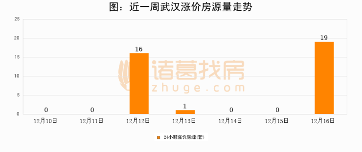 根据诸葛找房数据显示,武汉24小时涨价房源量为19套,较12月15日增加19套,环比上涨0%。与此同时,涨价房源占比小幅扩大,业主信心有所提升。
