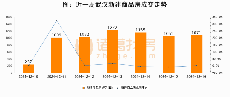 【武汉成交日报】12月16日新房成交1071套;涨价房源19套