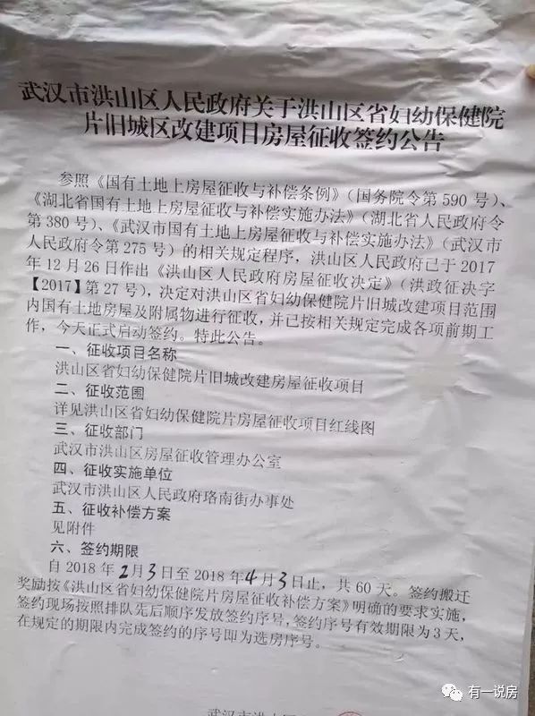 征收范围:洪山区省妇幼保健院—武珞路745号拆迁