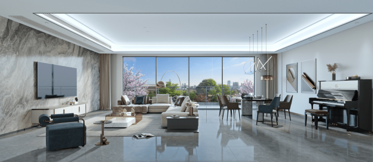约11.8米的IMAX式超大面宽,阳光和清风自如穿行,感受内心的惬意和自如。开阔的景观视野,得以让更多园林美境纳入眼界。人与自然的关系,得以融洽共生。