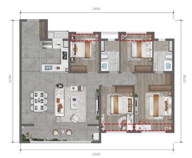 建面约143㎡的户型,客厅尊享约13.4米奢适面宽,带来四开间宽幅人居享受。约7米巨幕横厅,可容纳更多生活场景。