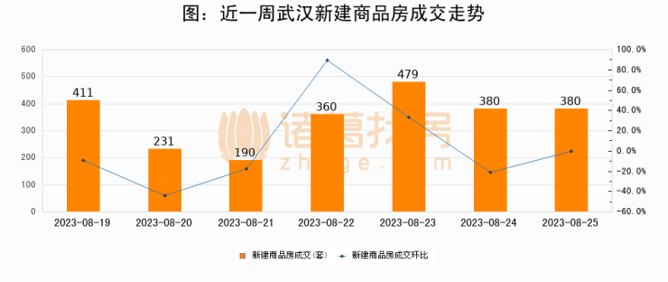 【武汉成交日报】08月25日新房成交380套;涨价房源155套