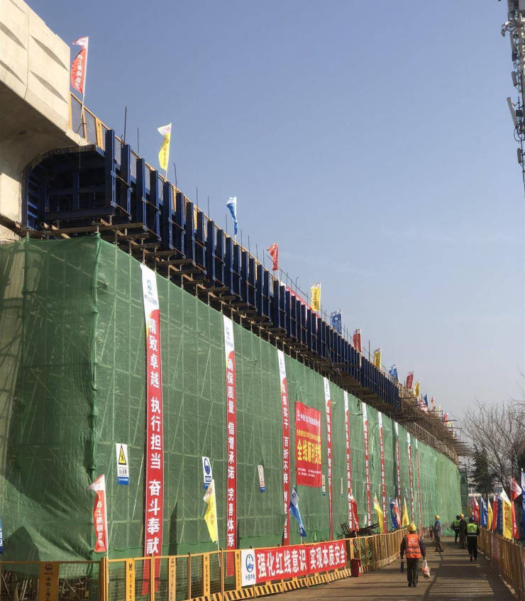 为了确保施工进度目标,连日来,5号线起点调整工程项目部采取流水线作业方式,在近千米长的高架线作业面,每天组织200余名施工人员进行架模、绑扎钢筋、焊接钢筋、浇筑混凝土施工。