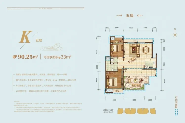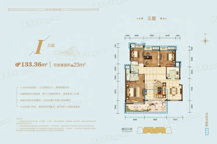 在户型上,亮点最突出的,是金银湖1号院的退台式花园洋房,无论是实得面积优化,还是居住舒适度,是同类型产品中非常能打的。