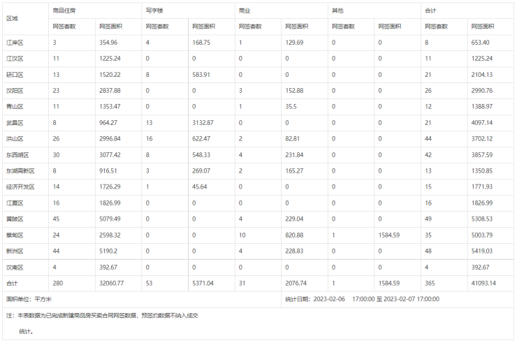 【武汉成交日报】02月07日新建商品住房成交280套